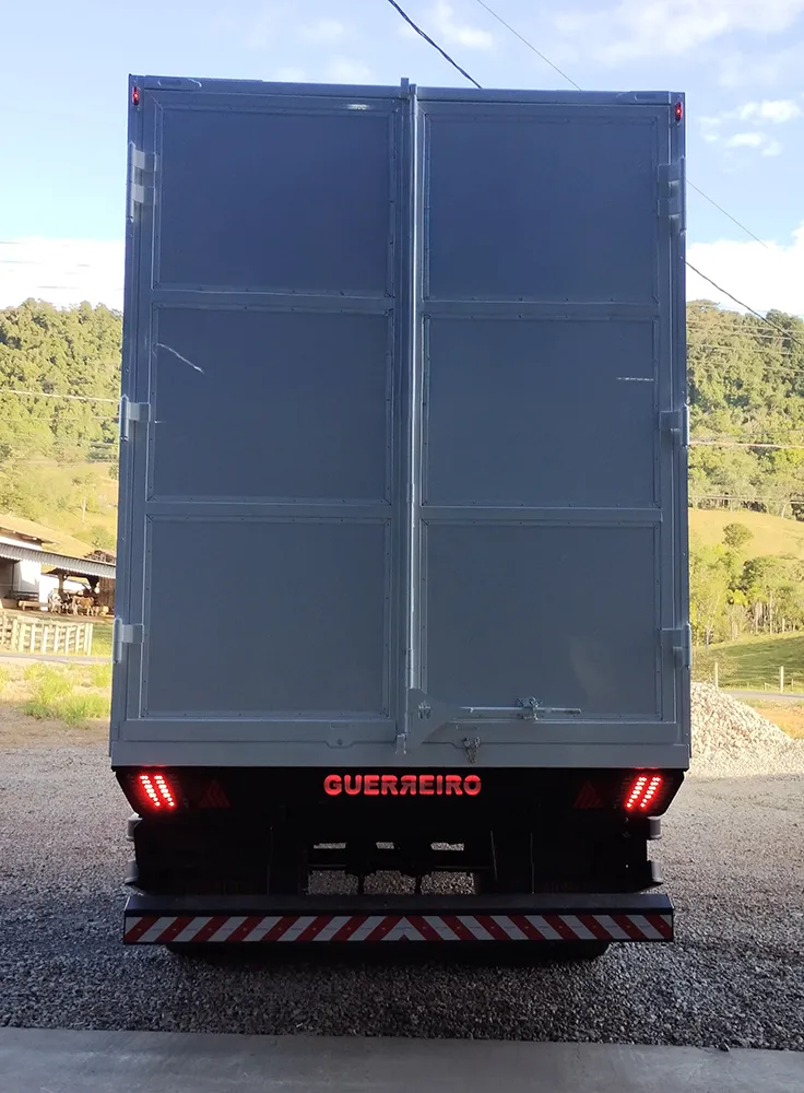 Sistema de descarga – Descarga traseira através de piso móvel, que combina lâminas de alumínio que se movimentam alternadamente, descarregando toda carga sem necessidade de basculamento.